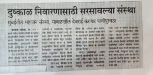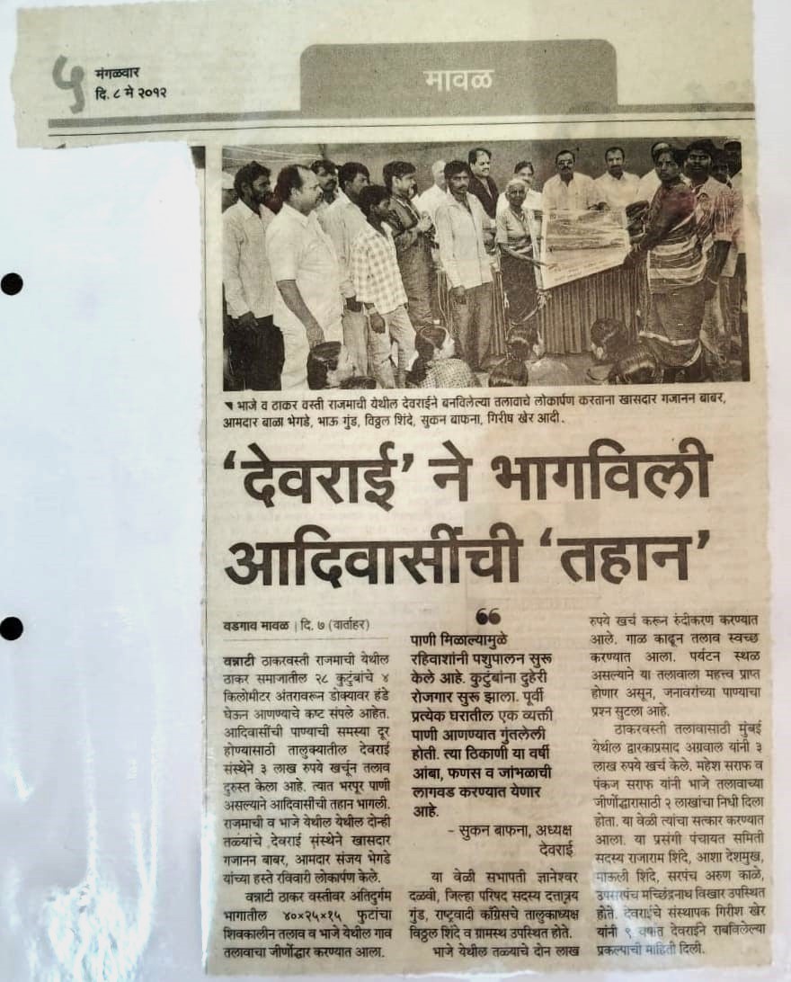 - नाणेमावळ येथील नाणे गावातील तळे गाळ काढून, जनावरांची पाणी सोय करण्यात आली.